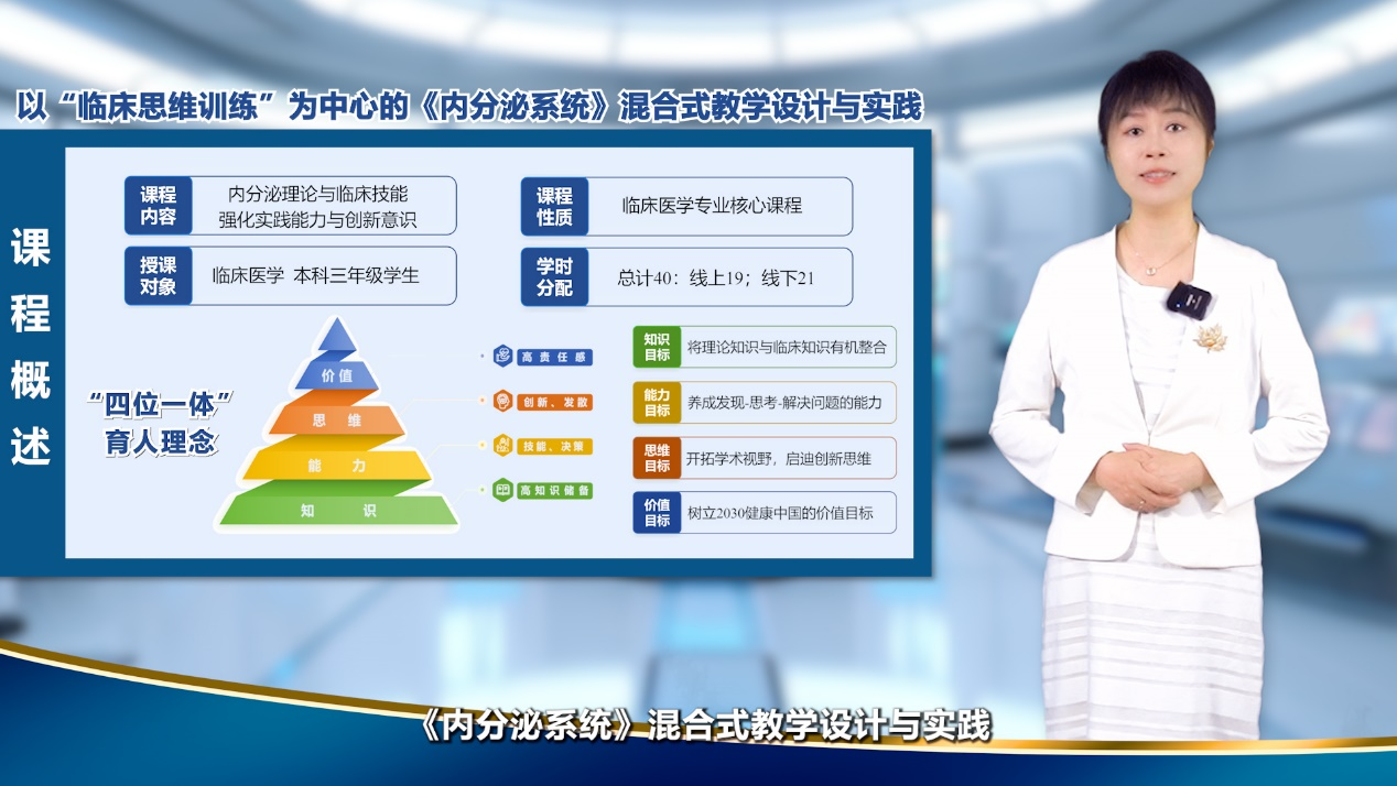 陆洁莉老师的《内分泌系统》课程是我校临床医学专业的必修课程。课程以知识与能力为核心,融入创新思维与价值引领,旨在培养具备扎实知识基础、高水平临床技能、创新意识与职业责任感的医学人才。在宁光院士、王卫庆教授和毕宇芳教授指导下,自2019年以来,课程持续推进混合式教学改革,先后获得2项校级全外语示范课程和1项课程思政项目支持,出版2部教材,编写内分泌系统案例版数字教材,并建设内分泌AI临床思维训练系统。课程创新构建以“临床思维训练”为核心的“四阶段七模块”混合式教学模式,充分融合线上与线下教学,贯穿知识建构、临床推理、医患沟通等关键能力的系统培养。课程改革成效显著,于2025年荣获第七届混合式教学创新大赛全国一等奖。