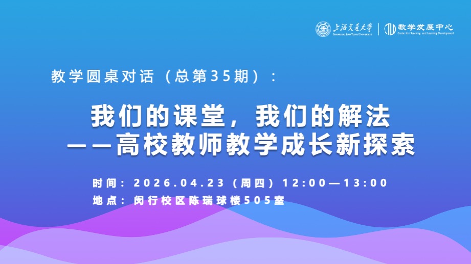 “教学圆桌对话”由高等教育事件、热门话题或现象导入,旨在探讨科研与教学的新理念、交流新做法,谋划新思路,着重突出思想的交锋与智慧的碰撞。通过教师充分对话与交流,折射高等教育科研与教学的最新发展方向以及社会环境演变。