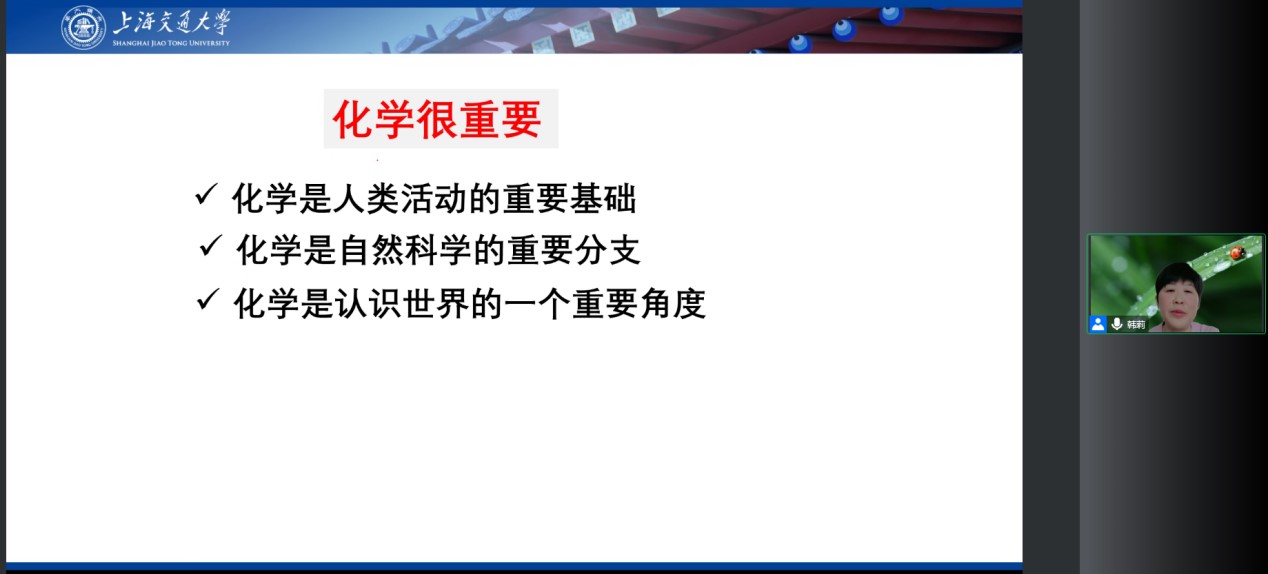 韩莉老师围绕“为何要学好化学、何为学好化学和怎样学好化学”三个方面的内容进行了分享。